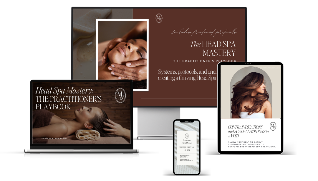 Created by Michelle McAuley, Founder of McAuley & Co Academy, this beautifully designed guide gives you the exact systems, treatment flows, and business structure used by top Head Spa professionals.